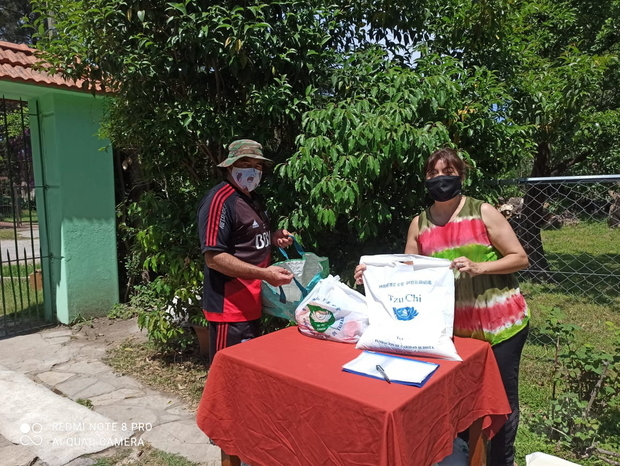 阿根廷因新冠肺炎影響,雖然有許多社會福利的補助,但仍然有一些家庭無法領取救濟基金,明亮之星家扶中心故而像慈濟請求援助。阿根廷慈濟聯絡處利用僑胞的愛心基金專款專用,從六月份開始,提供發放給明亮之星家扶中心生活物資,包括: 油、麵粉、麵條、米、馬袋茶、糖、麥片、漂白水等。於此同時也教導他們環保理念,並推舉臺灣在做環保方面的成效,諸如: 回收塑膠瓶可以再生製造成毛毯、衣服等,再幫助需要的人;要愛惜物資,書包不用每年換,還可用就好,要延續物命。